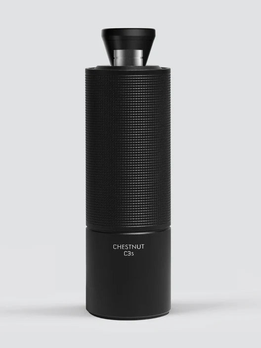 With a diameter of 52mm (2.05in) and weighing in at 530g (18.7oz) the Chestnut C3s is easy to hold and carry and has a generous capacity of 20g (0.7oz), enough for a cup or two of coffee.